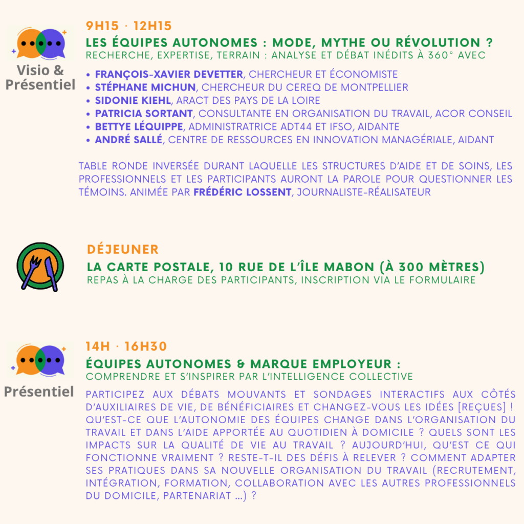 Table ronde inversée, regards croisés, débats mouvants, sondages interactifs et témoignages, retours exhaustifs des différentes parties prenantes alimenteront les échanges autour de la réalité des équipes autonomes.